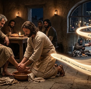 Mesmo diante da iminente traição (o "levantar do calcanhar"), Jesus mantém Sua missão e nos recorda que somos Seus embaixadores. Ao acolhermos o próximo e agirmos com o coração de servos, é o próprio Cristo que estamos acolhendo e apresentando ao mundo.